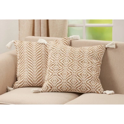 Perfect for both modern, bohemian, and rustic interiors, this woven jute throw pillow features a hypnotic geometric pattern and charming tassels at each corner. It brings subtle texture and dimension to any interior. Neutral colors make it versatile and easy to style with a wide range of decor accents. Toss it on your favorite chair, the sofa, or any bed for a stylish update.