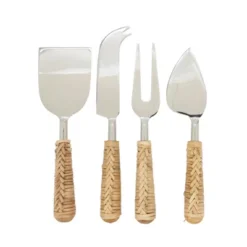 Saro Lifestyle Rustic Charm Wicker Cheese Cutlery (Set Of 4), Beige
