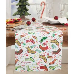 Saro Lifestyle Candy Cane Stripe Border Christmas Holiday Table Runner