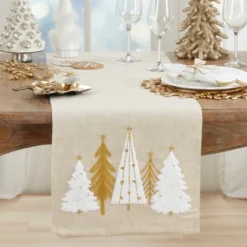 Saro Lifestyle Christmas Trees Table Runner, 16″x70″, Natural
