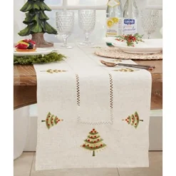 Saro Lifestyle Holiday Table Runner With Christmas Tree Embroidery