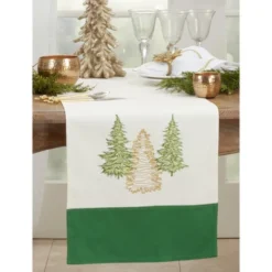 Saro Lifestyle Table Runner With Embroidered Christmas Trees Design, Green, 16″ X 72″