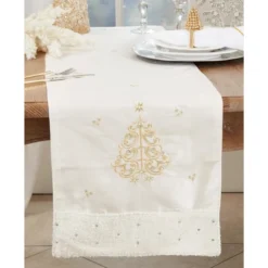 Saro Lifestyle Whimsical Embroidered Christmas Tree Table Runner, 16″x72″, Gold