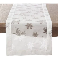 White Snowflakes Table Runner – Saro Lifestyle: Elegant Holiday Decor, Machine Washable, Polyester