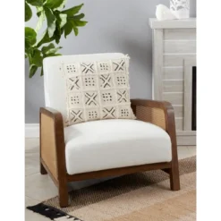 Saro Lifestyle Saro Lifestyle Cotton Pillow Cover With Crochet Design, Multi, 12″x16″