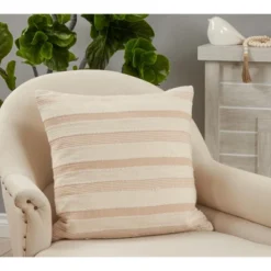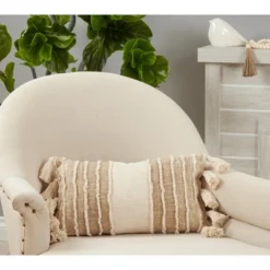 Saro Lifestyle Striped Tassel Decorative Pillow Cover, Ivory, 12″x20″