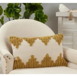 Saro Lifestyle Twisted Rope Trim Decorative Pillow Cover, Yellow, 18″