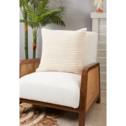 20″x20″ Oversize Stitch Line Design Square Throw Pillow Cover Natural – Saro Lifestyle