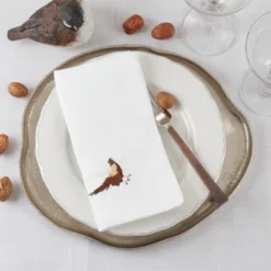 Saro Lifestyle Embroidered Table Napkins With Pheasant Design (Set Of 4)