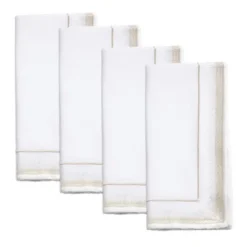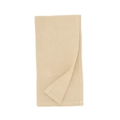 Saro Lifestyle Embroidered Flourish Scallop Design Casual Linen Blend Napkin – Set Of 4, 20″, Beige