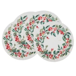 Saro Lifestyle Festive Foliage Holly Berry Wreath Placemat (Set Of 4), White, 15″x15″
