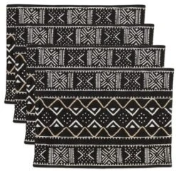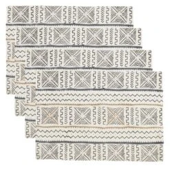 Saro Lifestyle Mudcloth Placemat, 14″x20″ Oblong, White (Set Of 4)