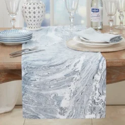 Saro Lifestyle Ink Spill Delight Table Runner, Blue, 16″x72″