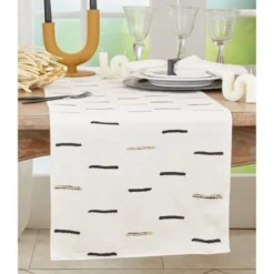 Saro Lifestyle Table Runner With Embroidered Dashes Design, 16″x72″, White