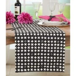 Saro Lifestyle Table Runner With Embroidered Crosses Design, 16″x72″, Black