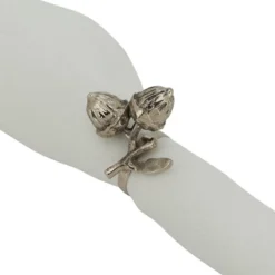 Saro Lifestyle Saro Lifestyle Table Napkin Rings With Acorn Design (Set Of 4), Silver,