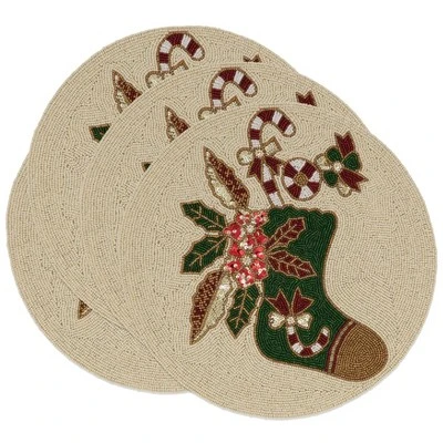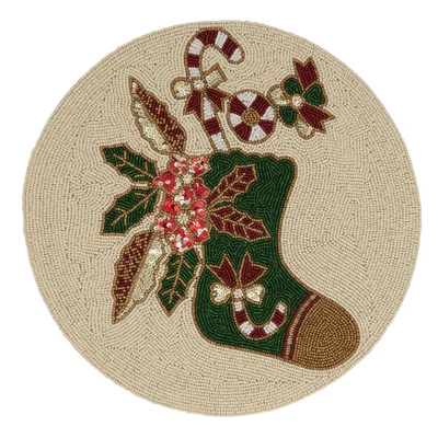 Featuring a round shape, the Beaded Christmas Stocking Placemats are a great way to highlight each and every place setting at your holiday table. Made with glass beads that catch and reflect light, these table mats are truly festive and bring a cheerful note to your tabletop. They’re easy to pair with a wide range of other holiday décor.