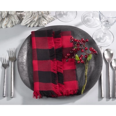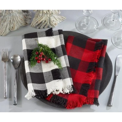 Add texture and a touch of whimsy to your table with this set of Fringed Buffalo Plaid Napkins. Made from 100% cotton, these cloth gems are great for entertaining or for everyday usage. The cotton napkins are highly versatile, easy to pair and fit within any space, whether it’s indoors or outdoors.