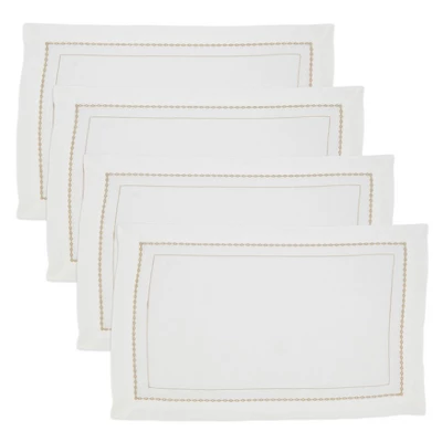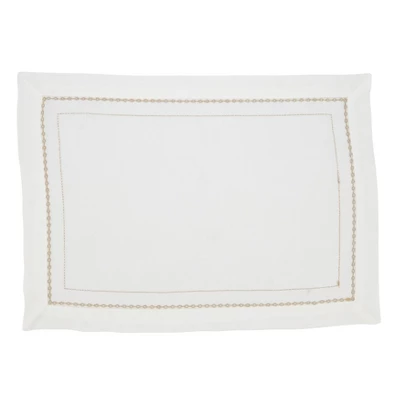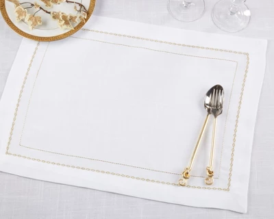 Elevate your table setting with this set of Embroidered Chainlink Placemats. Intricately crafted with a chainlink pattern, they exude timeless elegance. The exquisite embroidery adds a touch of sophistication, making these placemats a stunning addition to any dining experience.