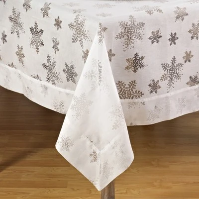 Bring a refined touch to your holiday table decor with this beautiful and festive tablecloth. The lightweight textile is covered with a sheer snowflake burnout design for a soft and timeless look. To create a classic and elegant tablescape, complete the look with the matching napkins, silver accents and clean dinnerware.