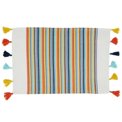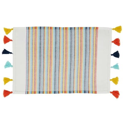 Perfect for any celebration, this lovely set of stripe Placemats will instantly brighten your tabletop and add cheer to the décor. Made with 100% cotton, the table mats are super soft and very durable. Pair with matching runner for a coordinated look or with solid colors for a contrasting effect.
