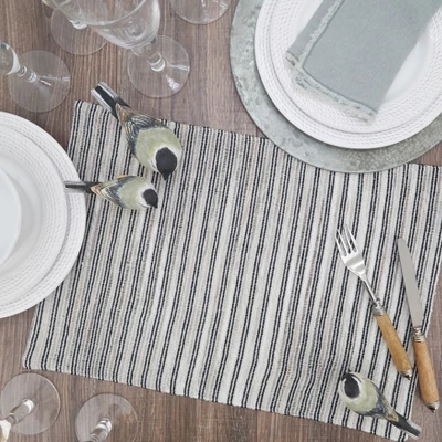 Featuring multiple thin, corded stripes in black and white, this gorgeous set of Corded Placemats adds texture and dimension to your tabletop. The high quality cotton construction gives a natural look and feel. The neutral color scheme makes styling with a variety of solid colors easy.
