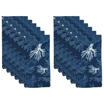 Bring the ocean’s breeze and deep tones to your table décor with this lovely set of Sea Coral Table Napkins. The navy blue backdrop with the white coral accents create a beautiful depth and add texture. The set includes 12 table napkins, which makes it perfect for hosting or big family reunions.