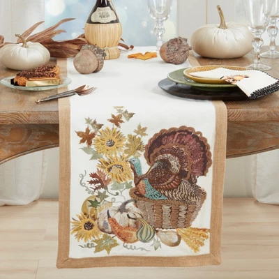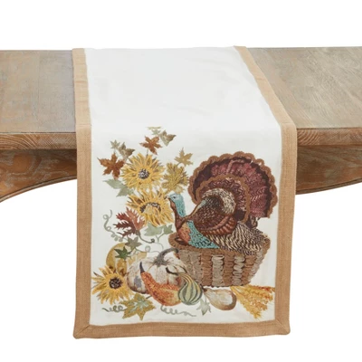 The Embroidered Turkey Table Runner is designed to complement any setting with style. A great accent for your everyday or seasonal table.
