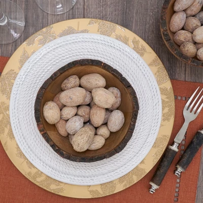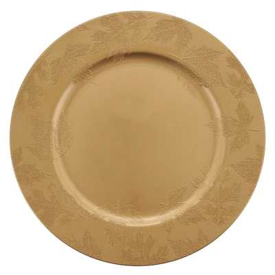 An elegant backdrop for special meals, the Fall Leaf Charger Plates feature a rich, golden finish that stands out. The edges are textured and patterned with fall leaves, creating a graceful design. The set is ideal for entertaining guests.