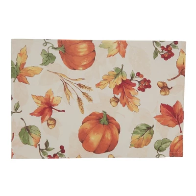 Featuring a beautiful combination of pumpkins and autumn foliage on a light background, this charming set of Fall Pumpkin Placemats is a great addition to your décor for the autumn months. It can also make for a lovely Thanksgiving table décor. Pair the set with a matching runner for a coordinated look.