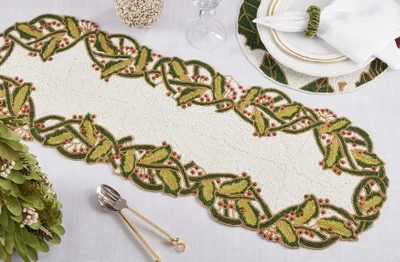 Infuse your holiday celebrations with sparkling charm using this Beaded Holiday Table Runner. Intricately designed with shimmering beads and festive motifs, it adds a touch of elegance to your table. Crafted with meticulous care, this runner sets the stage for a joyful and enchanting dining experience, creating lasting memories for years to come.