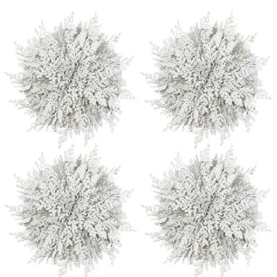 This set of Frosted Pine Placemats brings a wintry touch to your table. Flocked pine details create a cozy forest-inspired setting.