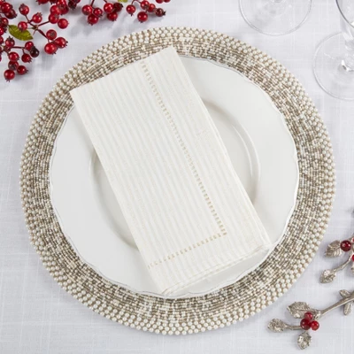 Effortlessly stylish, these hemstitched table napkins bring an understated beauty to any tabletop. While you can easily use it everyday, the set can also be dressed up for more formal entertaining. Pair with the matching runner for a cohesive look.