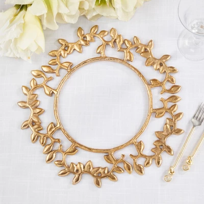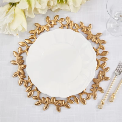 Bring a touch of nature to your gatherings with this set of Leaf Border Chargers. Featuring an embossed leaf border it elevates your place settings with organic charm.