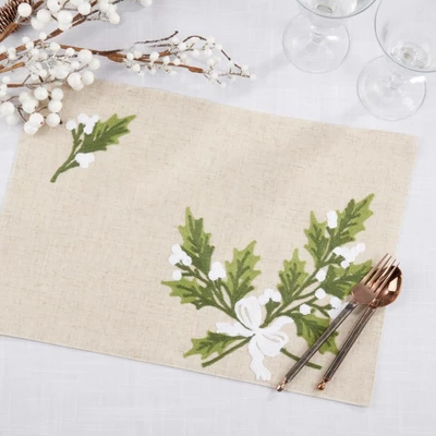 This set of Linen Blend Holly Leaves Placemats adds character and charm to your table. Designed to elevate everyday dining or special occasions alike.