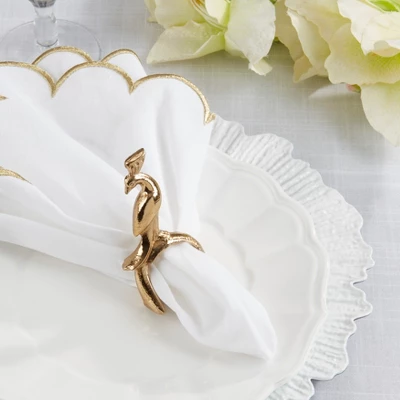 This set of Peacock Napkin Rings adds a glam touch with shimmering feathered flair. Perfect for elegant dinners and eye-catching tablescapes.