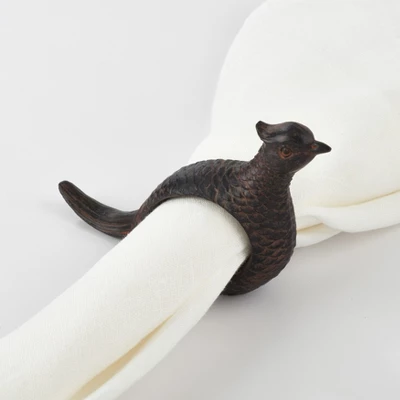 Featuring a stylish, hand carved design, these lovely Pheasant Design Napkin Rings bring farmhouse chic aesthetic to the table. The shape and construction of the napkin ring holders add great dimension to your place settings. Pair with cotton or linen napkins to maintain the rustic feel and look.