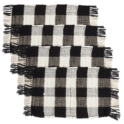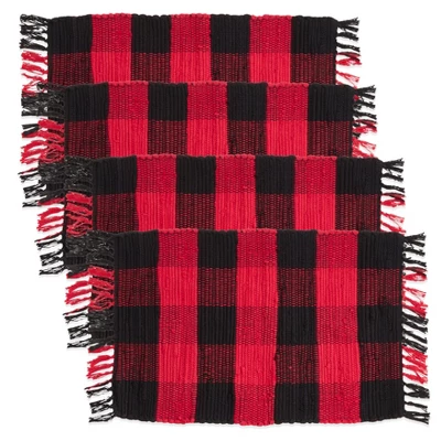This charming set of placemats features a marriage of two styles to create a unified and stylish accent. The weaving style of chindi beautifully balances and complements a bold but traditional buffalo plaid to bring soft texture and dimension to your place setting. High contrast colors add a burst of color and fresh update to any interior while accommodating a wide range of dinnerware and decor accents. Made with 100% cotton for softness, durability, and lasting use.