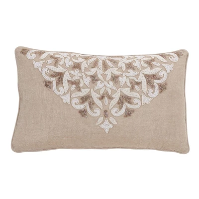 Bring a delicate, stylish note to your home décor with this beautiful Beaded and Embroidered Throw Pillow, featuring a flowing, intricate embroidery in contrasting tones. Perfect for the sofa as well as the bed, this linen blend throw pillow is designed in neutral tones, which makes it easy to pair.