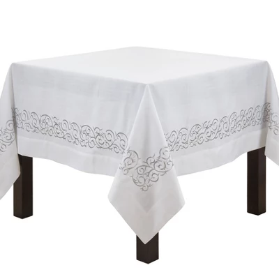Bring a classic touch to your dining table with this lovely, stylish Embroidered Scroll Tablecloth. Featuring a crisp white background and a delicate border embroidery, the tablecloth adds texture and refinement to your setting. The simple, yet graceful design is highly versatile and can be dressed up or pared down to fit the occasion.