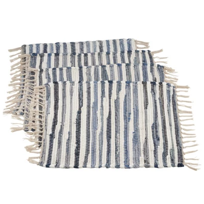 Take modern style to a new level with these stylish Striped Denim Chindi placemats. A lovely combination of bucolic design and modern print, these table mats are the perfect backdrop for your dishes and tableware. You can coordinate with a solid color or even a matching runner.