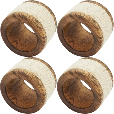 Made with mango wood and natural rope, this set of Rope and Wood Napkin Rings brings an organic look and feel to your tabletop. The rings use light, natural tones to create balance, which makes the set easy to pair with an array of table linens and dinnerware. It’s a great way to add style to your table.