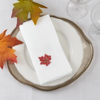 Bring nature’s touch to your table décor with these exquisite Embroidered Autumn Leaf Table Napkins. Featuring rich and deep hues, as well as intricate embroidery, these table napkins add warmth, texture and color to any place setting. They can be easily styled up or pared down to suit any occasion.