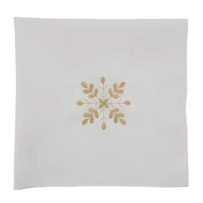 This delicate set of snowflake design dinner napkins is the perfect addition to your holiday table. The subtle tones, and sparkly touches bring elegance to any décor. Pair with a matching tablecloth and solid dinnerware to complete the look.