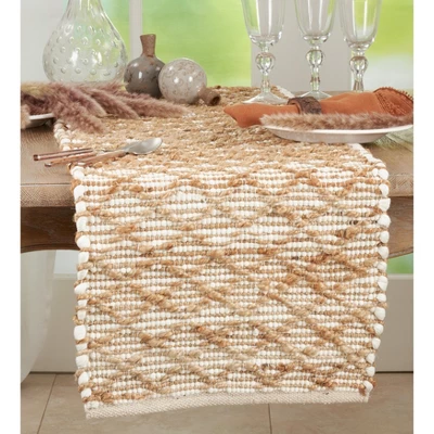 Ideal for casual dining and everyday use, this homey Diamond Chindi Design Table Runner is a versatile addition to your dining arsenal. The jute and cotton blend lends a natural look and feel to the table, while the diamond design adds texture and dimension. Pair it with solid colors within the same palette.