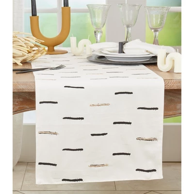 Featuring a subtle, still colorful design against a solid background, this casual Embroidered Dashes Table Runner is a versatile foundation for any table or event. It’s easy to style with matching placemats or include solid color linens for a relaxed meal with family and friends. The quality cotton blend makes the runner perfect for everyday use.