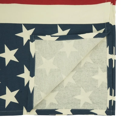 Give your dining table a festive and patriotic backdrop with this cheerful American Flag Design Tablecloth. Perfect for Memorial Day or 4th of July celebrations, the tablecloth is made with 100% cotton for softness and durability and it’s ideal for long-term use. It’s easy to pair with solid reds, blues or whites, as well as matching table linens.